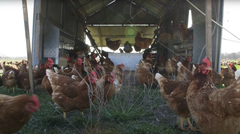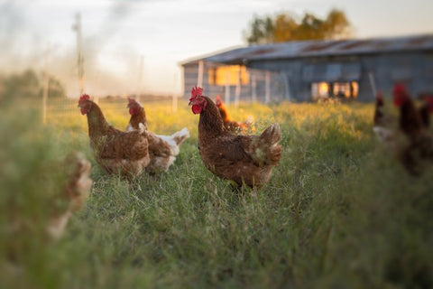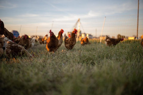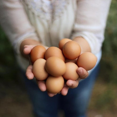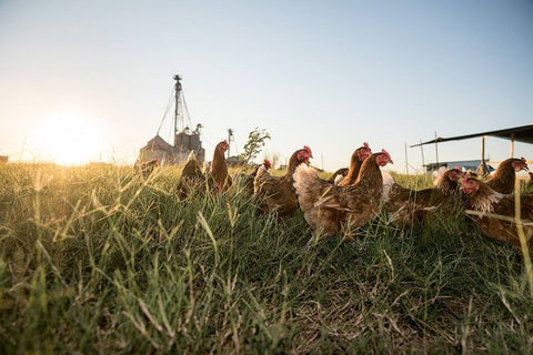 Because our hens forage in our nutrient-dense pasture all day, about 30% of their diet comes from the green pasture plants and insects. This makes our eggs extremely nutrient-dense, higher in Omega-3 fatty acids, and lower in cholesterol than eggs produced in confined conditions. To supplement our hens' wild diet, we mill organic feed for them on-site here at Coyote Creek Organic Feed Mill & Farm. Our feed is USDA Certified Organic and Non-GMO Project Verified, and it never contains herbicides, pesticides, animal by-products, hormones, or pharmaceuticals.
